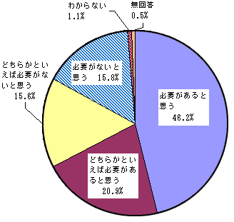 | 問11 | 事務の共同処理による広域行政は、事業実施にあたって関係市町村との連絡調整に労力を要し迅速性に欠ける、住民に対する責任の所在が不明確になるなどの課題があるといわれております。 このような課題を踏まえ、総合的な地域づくり・まちづくりの展開、住民サービスの維持向上、行財政運営の効率化と基盤の強化という観点から、広域行政の有効な方策として「市町村合併」を推進すべきであるという意見があります。 あなたは、市町村合併(その是非を含む)について、議論をする必要があると思いますか。あてはまるもの1つだけに○をつけてください。 |